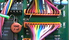 Photo 2 shows the lower right corner of the main circuit board of an "original formula"  black-faced Adat.  On the far left of connector J-11 (labeled "short") are four wires — Black, Brown, Red and Orange — that connect to the Mode switch.  The most sensitive state is the transition from unload to load — just as the tape is lowered.  Listen to the orange lead first and work your way left.